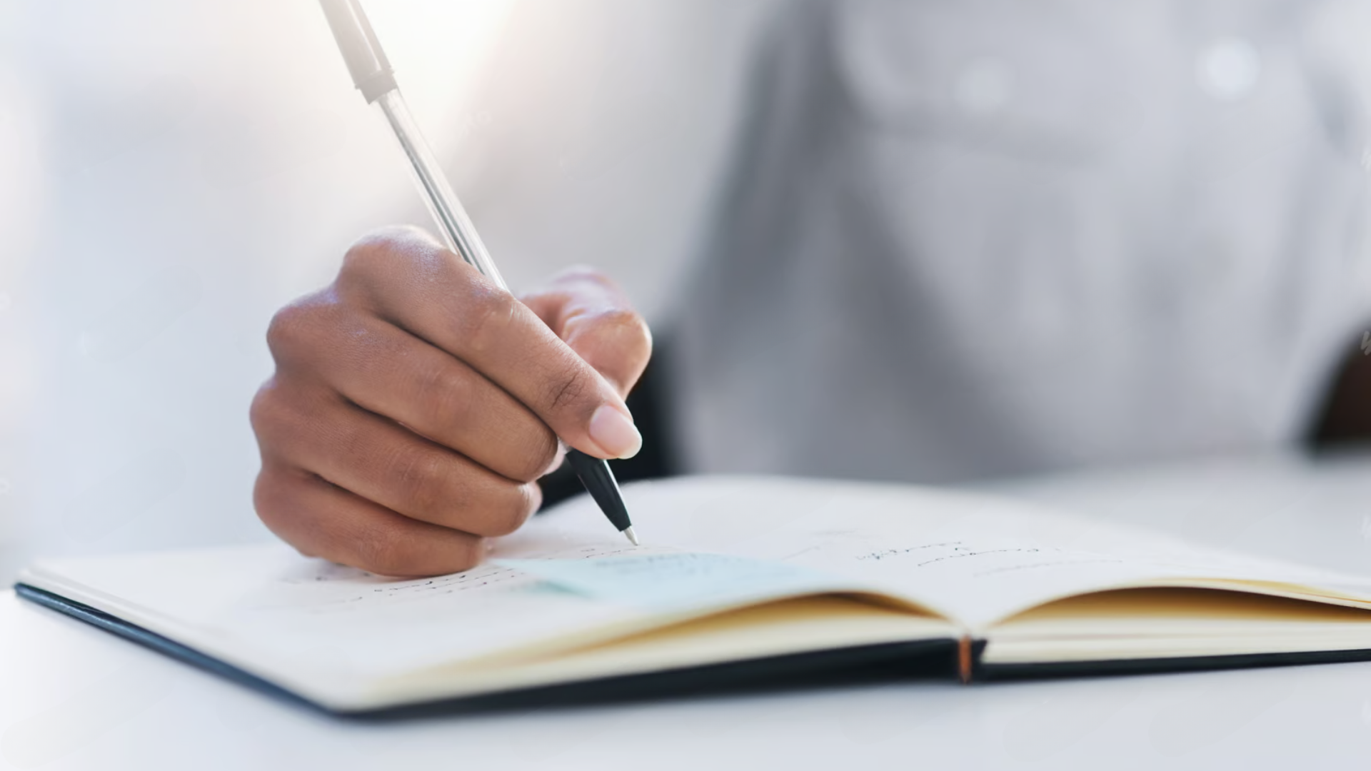 Person writing in a custom branded notebook