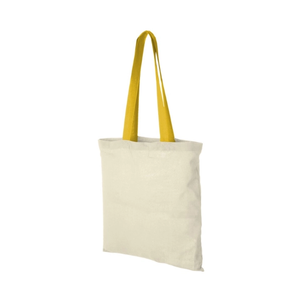 With its brighly coloured handles this bag will add a pop of color to each event, congress or festival. The Nevada 100 g/m² cotton tote bag is a budget-friendly and lightweight bag with an open main compartment. With its 7 litre capacity this tote bag is perfect for carrying around everyday essentials. 30cm long handles, resistance up to 5kg weight.
