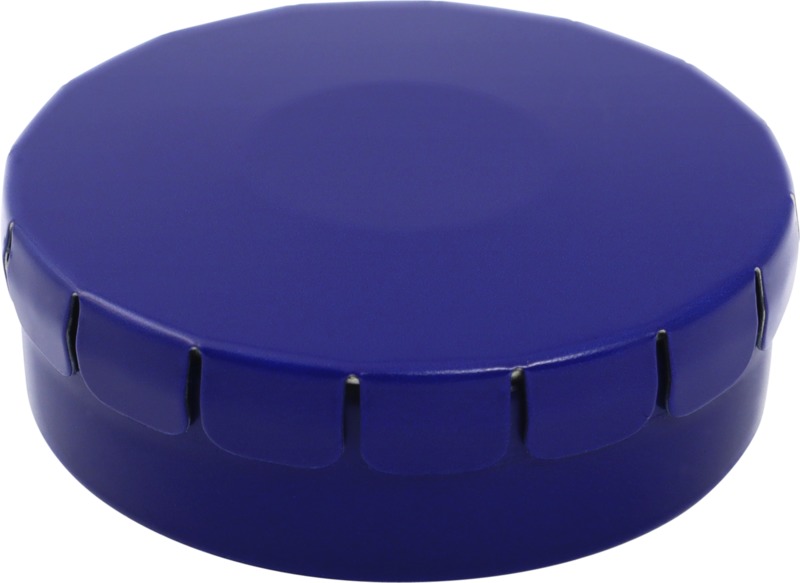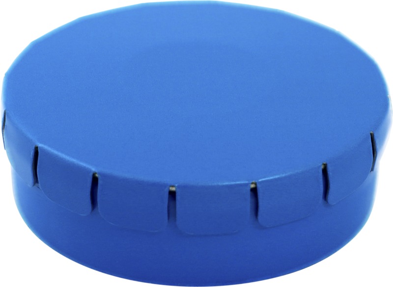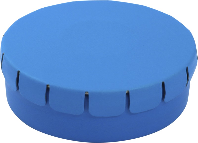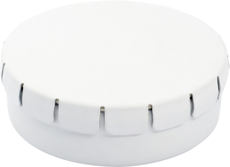 Natural mints in tin container with easy-press opening. Can be ordered in a wide range of colours and filled with various fillings: mints, extra strong mints, sugar free mints, fruit drops, heart shaped strawberry, cinnamon, lemon and mint sweets, or chocolates. Can be decorated with a full colour digital print on the lid.